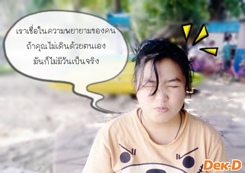 แสงเพลิง : พยายามเรื่อยๆ เหนื่อยก็พักค่ะ 5555 คือเราเชื่อในความพยายามของคน เชื่อว่าสิ่งที่ยิ่งใหญ่เกิดได้จากความพยายามทั้งนั้น ถ้าคุณไม่เดินด้วยตนเองมันก็ไม่มีวันเป็นจริง แต่ขณะเดียวกันมันก็ยังมีอีกหลายสิ่งรอบตัวให้เราได้ชมได้มอง มีหลายคนรอบตัวที่กำลังเดินเหมือนกัน การพักมองรอบข้างบ้าง พูดคุยทักทายกับผู้คนที่กำลังเดินไปเหมือนกันมันก็เป็นเรื่องที่ดีมากกว่าการคิดแต่จะพยายามมุ่งไปข้างหน้าอย่างเดียว