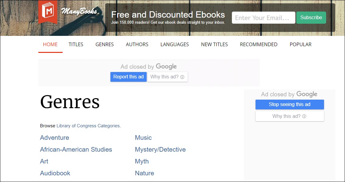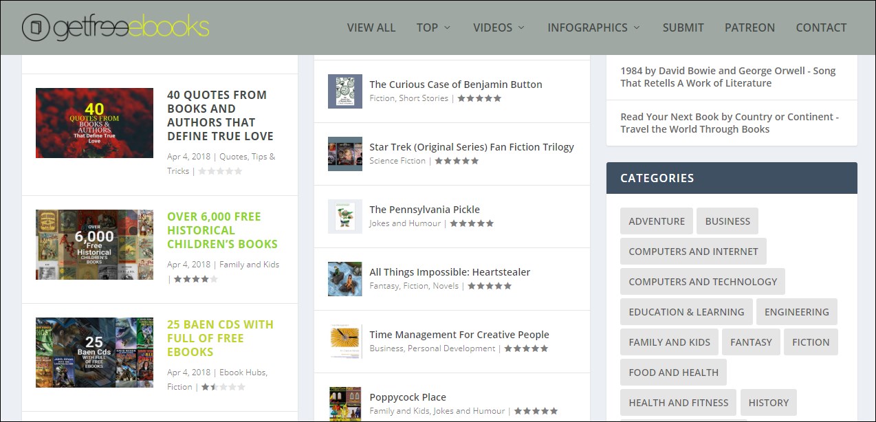 มาเริ่มต้นกับเว็บไซต์ GetFreeEbooks.com เว็บนี้รวบรวมหนังสือไว้หลากหลายแนวมาก มีเป็นพันๆ เล่มเลยครับ และหนังสือส่วนใหญ่ที่เปิดให้ดาวน์โหลดนั้น จะเป็นหนังสือโดยนักเขียนอิสระ หรือหนังสือที่จัดทำขึ้นมาเอง ที่เห็นเปิดให้ดาวน์โหลดก็จะมีทั้งแนวประวัติศาสตร์อเมริกา เรื่องชนเผ่า หรือศาสนาในต่างประเทศ และก็ยังมีหนังสือพวกทฤษฎีต่างๆ แถมยังมีนวนิยายให้โหลดไปอ่านอีกด้วย