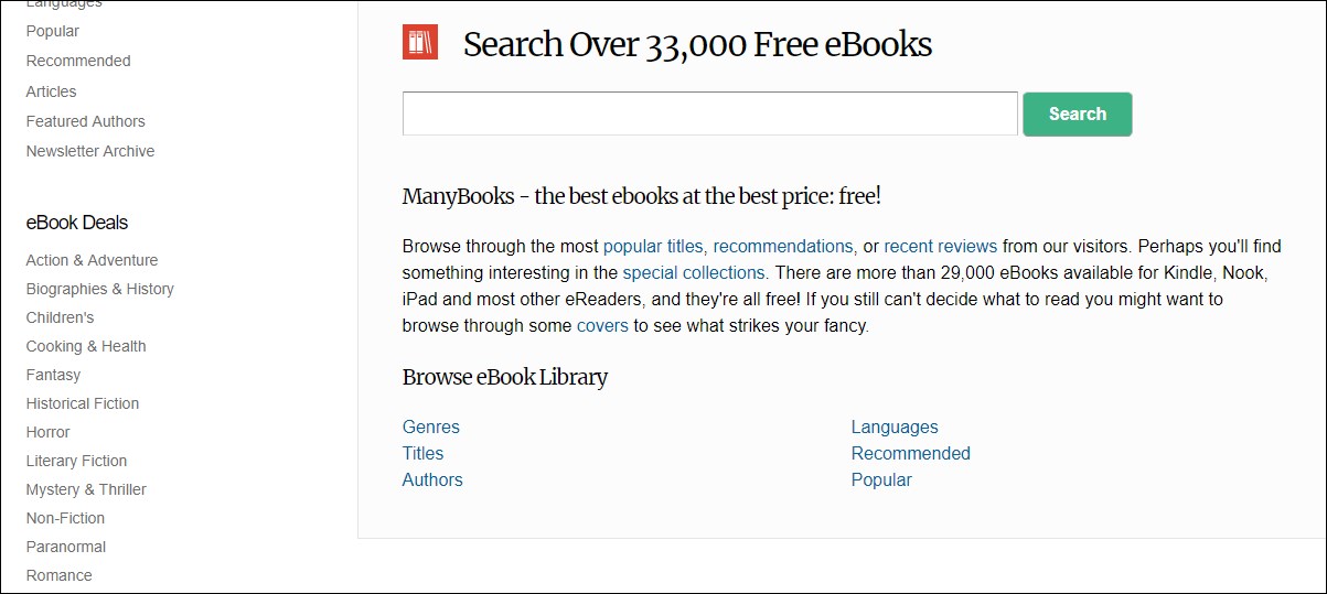 สำหรับเว็บไซต์ Free E-Books ก็เป็นอีกเว็บนึงที่มีการใช้งานง่าย และก็มีหนังสือออนไลน์ให้ดาวน์โหลดเพียบ แต่ก่อนที่จะเข้าไปดาวน์โหลด น้องๆ จะต้องลงทะเบียนสมัครกันก่อนนะ แถมสมัครฟรี ไม่เสียค่าใช้จ่ายสักบาท ส่วนหนังสือที่เปิดให้ดาวน์โหลดก็มีครบทุกศาสตร์ทุกแขนงเลยครับ มีทั้งนวนิยาย แฟชั่นความสวยความงาม สุขภาพ เกม เศรษฐกิจ การเมือง ปรัชญา วิทยาศาสตร์ วรรณกรรม การท่องเที่ยว จิตวิทยา สิ่งแวดล้อม ศาสนา หรือแม้กระทั่ง หนังสือ web design ก็ยังมีให้โหลดแบบฟรีๆ เลยครับ