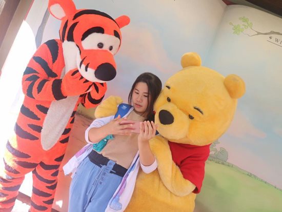 ประสบการณ์ฮาๆ ก็มีเหมือนกัน “เคยออกไปเที่ยวเล่นกับหมีพูห์ในร้านอาหาร เจอเด็กนอนบนรถเข็น เราเลยก้มคุกเข่าไปโบกมือเล่นด้วย เจอเด็กถีบกลางท้องเฉยยย5555”