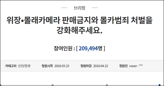 แม้ว่าเวลาจะผ่านไปกี่ปีก็ตาม แต่การเรียกร้องให้รัฐบาลจัดการกับปัญหานี้ยังคงดำเนินอยู่ อย่างล่าสุด มีคนมาลงชื่อเรียกร้องบนเว็บไซต์ของรัฐบาลมากกว่า 200,000 รายชื่อ และดูเหมือนว่าจะเพิ่มขึ้นเรื่อยๆ และล่าสุดทางกระทรวงความเท่าเทียมกันทางเพศและครอบครัว ก็ได้ออกมาช่วยเหลือเหยื่อที่โดนแอบถ่าย ทั้งช่วยลบคลิป ลบรูปภาพ และดำเนินการกับคนที่โพสต์ อีกทั้งทางรัฐบาลยังได้บอกไว้ว่า "ถ้าพวกคุณถูกคุกคามทางเพศในโลกออนไลน์ รัฐบาลจะอยู่ตรงนี้เพื่อคอยช่วยเหลือเอง"