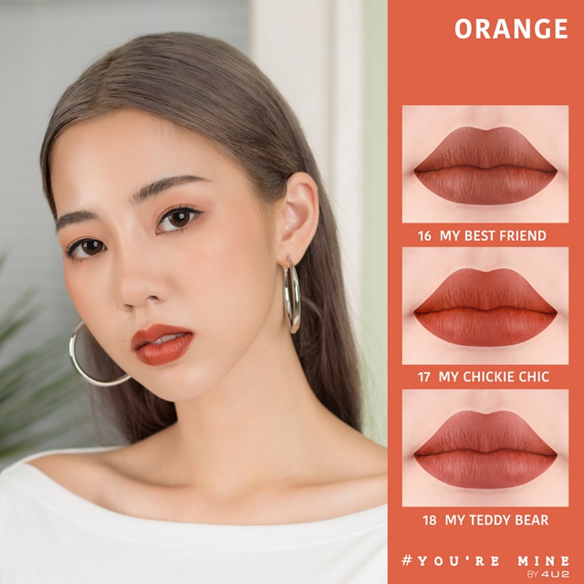 เป็นคนผิวสองสีค่ะ คิดว่าลิป4U2 YOU’RE MINE โทนสีส้มนู้ดเหมาะกับตัวเองทาแล้วไม่ซีดเกินไป ดูแล้วธรรมชาติ ประมาณสี 01 02
