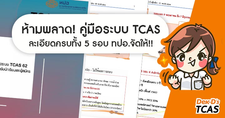 ล่าสุด! ทางทปอ. ได้ประกาศคู่มือระบบ TCAS 62 เพื่อให้น้องๆ ผู้สมัคร หรือผู้ปกครอง ได้เข้าใจในระบบ TCAS ประจำปีการศึกษานี้มากขึ้น โดยในคู่มือนี้ประกอบไปด้วย