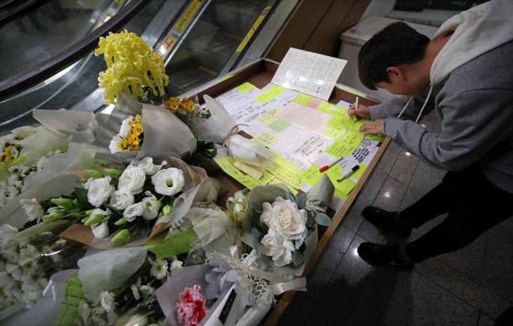 จากภาพด้านบน คนเกาหลีหลายคนแวะมาแสดงความเสียใจและเขียนจดหมายร่ำลาให้กับน้องพนักงานหนุ่มพาร์ตไทม์ ซึ่งจัดที่ร้านอินเทอร์เน็ตที่น้องเคยทำงานอยู่ บรรยากาศคือเศร้ามาก :(