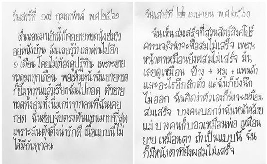 ตอนนี้ก็แอบคิดเหมือนกันว่า...หรือเราจะเพลาๆ โซเชียลลงแล้วหันกลับไปเขียนไดอารี่เหมือนเดิมดีไหม ความรู้สึกมันต่างกันมากนะ ความคลาสสิคอะไรต่างๆ รวมทั้ง 'ไดอารี่ไม่เคยเปลี่ยนเราเหมือนโซเชียล' เรามีความสุขกับการเขียนไดอารี่จริงๆ ไม่เหมือนโซเชียลที่มานั่งนับว่าจะได้ยอดไลค์เท่าไร คนเห็นกี่คน ...พูดแล้วคิดถึงเลยค่ะ ติดที่ขี้เกียจนี่ล่ะ 55