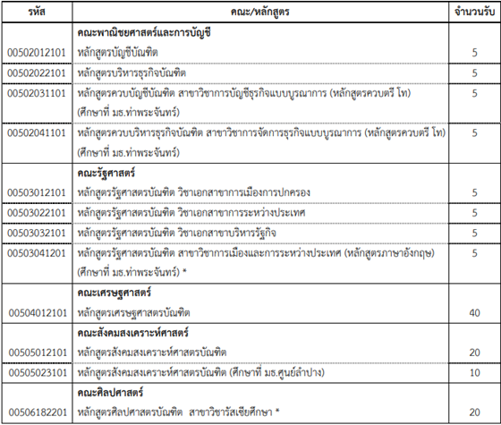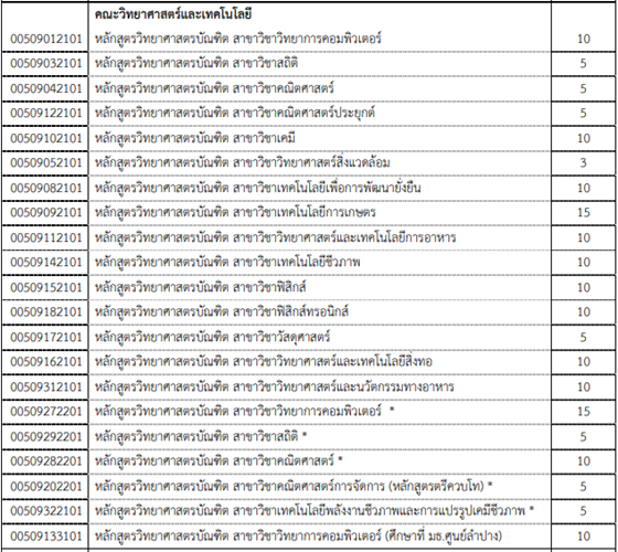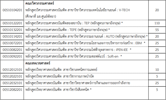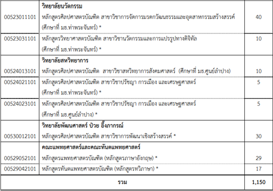 คณะ/สาขาวิชาที่เปิดรับ พร้อมจำนวนรับ