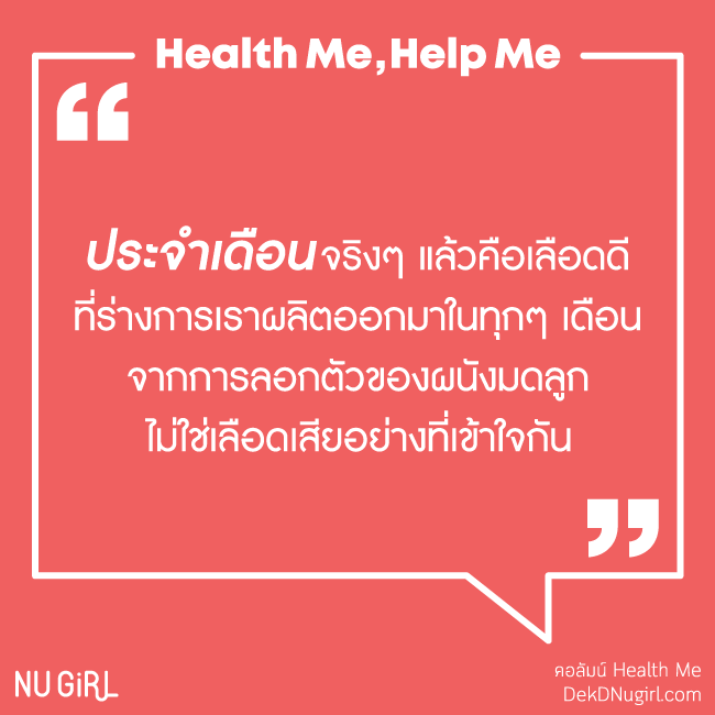 จริงๆ แล้วประจำเดือนคือเลือดดีที่ร่างการเราผลิตออกมาในทุกๆ เดือน เกิดจากการลอกตัวของผนังมดลูกไม่ใช่เลือดเสียอย่างที่เข้าใจกัน