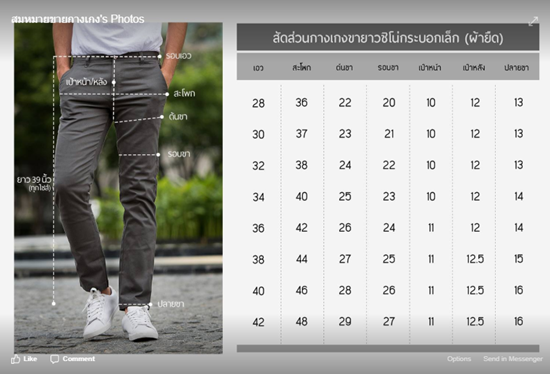 ลูกค้า: "กางเกงตัวนี้ไซซ์ใหญ่สุดเท่าไหร่ครับ?" (แนบรูป)
