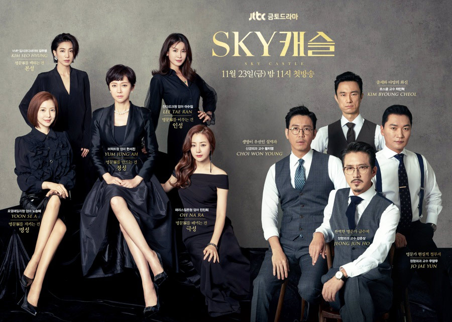 SKY Castle (SKY 캐슬) เป็นละครแนวดราม่าเสียดสีสังคมเกาหลี ออนแอร์ทางช่อง JTBC ตอนแรกเมื่อช่วงเดือนพฤศจิกายนที่ผ่านมา แรกเริ่มแล้วต้องบอกว่าเรื่องนี้เป็นละครที่ผู้คนไม่ได้สนใจมากนัก ด้วยความที่เป็นละครจากช่องเคเบิล แถมยังฉายช่วงเวลา 5 ทุ่มซึ่งไม่ใช่เวลาไพร์มไทม์ที่คนดูเยอะ โดยในตอนแรกเรตติ้งของละครเรื่องนี้เปิดตัวไปแค่ 1.7% เท่านั้น แต่ด้วยความเข้มข้นของละครที่ค่อยๆ ทวีคูณมากขึ้นเรื่อยๆ ในแต่ละตอนที่ออนแอร์ ทำให้เกิดกระแสปากต่อปากมากขึ้นเรื่อยๆ เรตติ้งก็ค่อยๆ ทะยานเพิ่มขึ้น จนตอนล่าสุด SKY Castle ได้กวาดเรตติ้งไปเกือบร้อยละ 20 มีคนชมสดมากกว่า 2 ล้านคน แถมยังขึ้นแท่นเป็นละครช่องเคเบิลที่มีเรตติ้งสูงสุดตลอดกาลอีกด้วย!