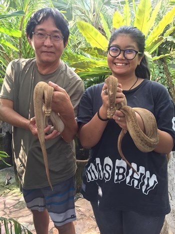 “เราเริ่มสนใจเอาจริงเอาจังตอน ม.ปลาย ตอนนั้นเราเห็นศูนย์เสาวภาเปิดให้ลงอบรมปฏิบัติจับงู เราก็ขอพ่อแม่ไปฝึก แล้วพอได้สัมผัสเค้า รู้วิธีจับที่ถูกต้อง รู้ว่าพิษเป็นยังไง ถ้าโดนแล้วต้องทำยังไงบ้าง เราก็มั่นใจขึ้น พอพ่อแม่เห็นเราจริงจังด้านนี้ก็เปิดไฟเขียวอนุญาตให้เลี้ยงค่ะ ^^”