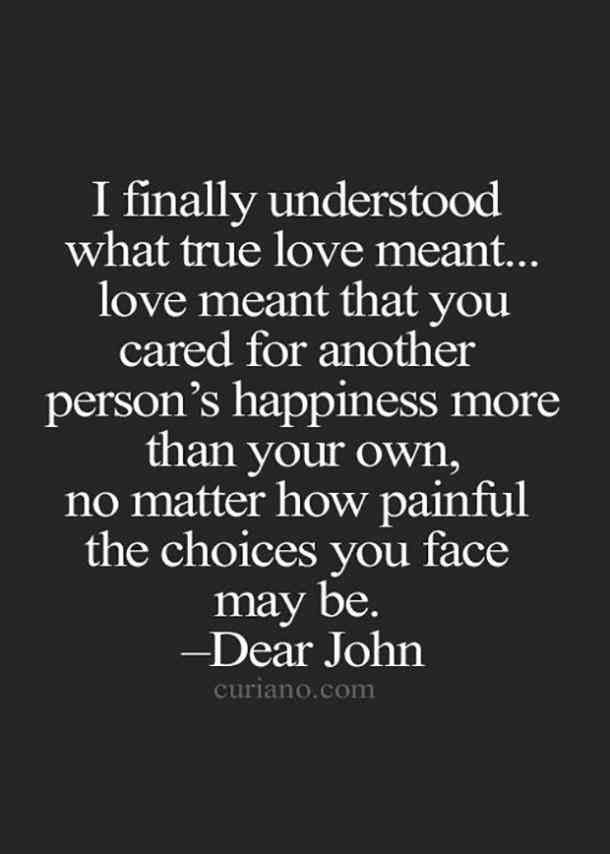 “I finally understood what true love meant...love meant that you cared for another person's happiness more than your own,