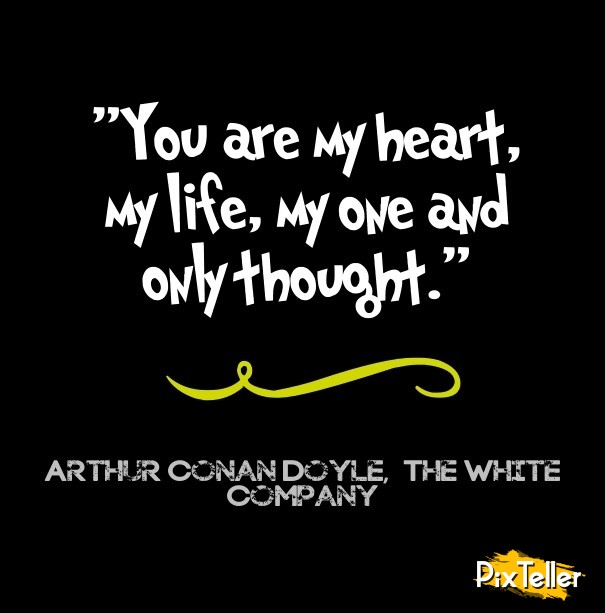 แม้นิยายเรื่อง The White Company ของอาเธอร์ โคนัน ดอยล์จะไม่ดังเมื่อเทียบกับเชอร์ล็อค โฮล์มส์ แต่เรื่องนี้กลับดังมากๆ ในช่วงสงครามโลกครั้งที่ 2 ว่าด้วยเรื่องราวที่พิสูจน์ให้เห็นถึงคำสัญญาอันยิ่งใหญ่ บอกเลยว่าไม่มีอะไรจะฟังแล้วทำให้หน้าแดงเท่ากับประโยคนี้อีกแล้ว แค่คำว่า “คุณคือหัวใจของฉัน” ก็ครอบคลุมไปหมดโดยไม่ต้องการคำอธิบายใดๆ เพิ่ม ลองเอาไปใช้สิ รับรองว่าอีกฝ่ายต้องเขินจนตัวบิดแน่ๆ