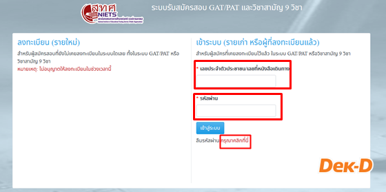 1) ใส่เลขประจำตัวประชาชน และรหัสผ่าน แต่ถ้าลืมรหัสผ่าน ก็กดตรง "กรุณาคลิกที่นี่"
