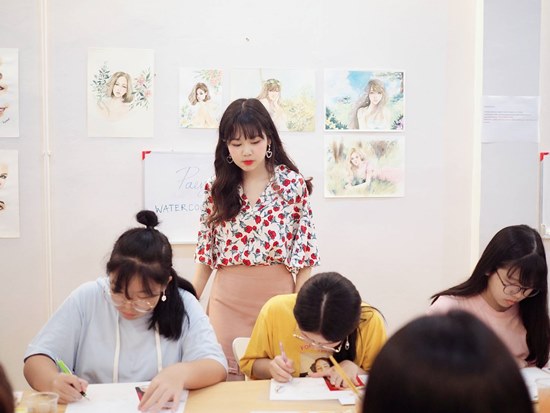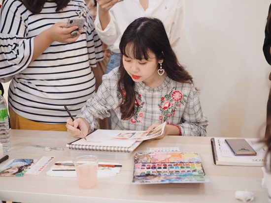 “หลังจากนั้นตอนจบ ม.ปลาย จะมีช่วงว่าง 6 เดือนก่อนเปิดมหาลัย เราก็เอาเวลามาฝึกวาดสีน้ำจริงจัง และมีโอกาสได้เป็นครูสอนสีน้ำด้วย เริ่มทำคอร์สแล้วพัฒนาเรื่อยๆ จนมาเปิดเป็นของตัวเองแล้ว”