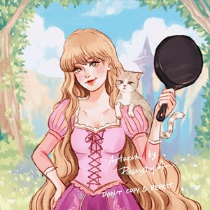 “คนสุดท้ายคือ ‘จีซู’ = ‘เบลล์’ ตอนแรกแพรลังเลว่าจะวาดเป็นเจ้าหญิงองค์ไหนดี แต่จำได้ว่ามีคนในทวิตเตอร์แนะนำว่าให้วาดเป็นเจ้าหญิงเบลล์ เพราะเธอชอบอ่านหนังสือ พอไปคิดดูจริงๆ ก็รู้สึกใช่เลย ทั้งคู่ชอบอ่านหนังสือและมีความรับผิดชอบสูงเหมือนๆ กัน”