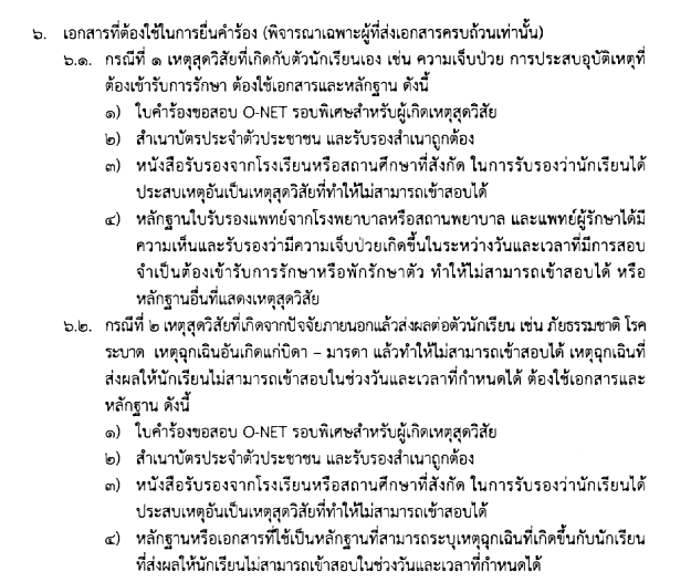 สำหรับน้องๆ คนไหนที่มีเหตุสุดวิสัย ทำให้ไม่ได้เข้าสอบ O-NET ในวันที่ 2-3 มีนาคม 2562 ที่ผ่านมา ไม่ต้องกังวลไป ทาง สทศ. เปิดรับสมัครสอบ O-NET รอบพิเศษในวันที่ 4 - 8 มีนาคม 2562 ซึ่งน้องๆ ที่จะเข้าสอบในรอบนี้ได้ จะต้องมีคุณสมบัติ ดังนี้