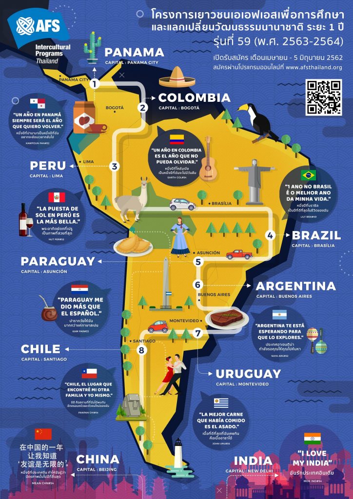 มูลนิธิการศึกษาและวัฒนธรรมสัมพันธ์ไทย-นานาชาติ (เอเอฟเอส ประเทศไทย) ได้ดำเนินการร่วมกับเอเอฟเอสโลก และประเทศสมาชิกจำนวนกว่า 50 ประเทศ จัดโครงการเพื่อการเรียนรู้ด้านภาษา และแลกเปลี่ยนวัฒนธรรม โดยมุ่งหวังในการสร้างความเข้าใจอันดี และการอยู่ร่วมกันอย่างมีความสุขระหว่างมวลมนุษยชาติ และเป็นการพัฒนาทักษะ ค่านิยมส่วนบุคคล ตลอดจนวัฒนธรรม และวิถีชีวิตความเป็นอยู่ของเยาวชน จนสามารถปรับตนเองให้อยู่ร่วมกับบุคคลอื่นที่มีความแตกต่างในหลายๆด้านได้อย่างมีความสุข ทั้งนี้เยาวชนที่เป็นคนดี มีคุณสมบัติ และความสามารถ เหมาะสมตามเกณฑ์ และมาตรฐานของเอเอฟเอสจะได้รับการคัดเลือกเป็นตัวแทนของเยาวชนไทยไปศึกษา และพำนักกับครอบครัวอุปถัมภ์ในต่างประเทศระยะเวลาประมาณ 1 ปีการศึกษา โดยโครงการเยาวชนเอเอฟเอสเพื่อการศึกษาและแลกเปลี่ยนวัฒนธรรมนานาชาติ ระยะ 1 ปี รุ่นที่ 59 (พ.ศ. 2563 - 2564) นี้เปิดรับสมัครตั้งแต่วันที่ 1 เมษายน 2562 ถึงวันที่ 5 มิถุนายน 2562 ครับ