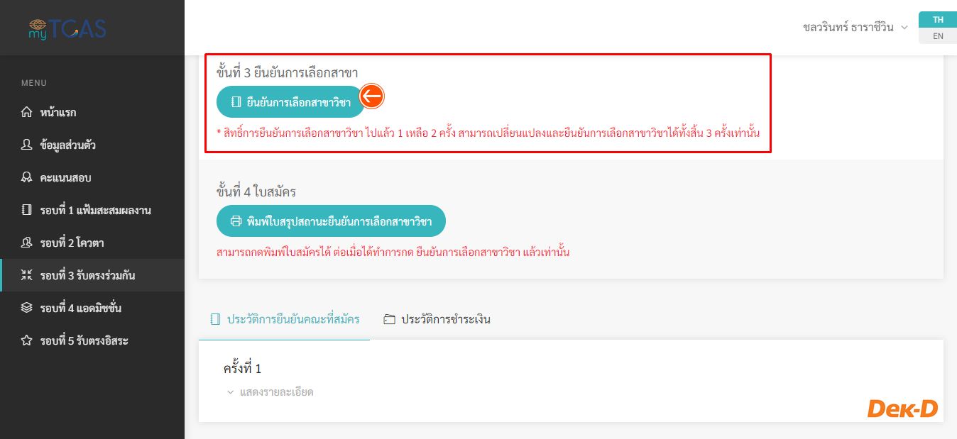 **แต่สำหรับใครที่สมัครอันดับเพิ่ม จะต้องพิมพ์ชำระเงิน และชำระเงินเพิ่มเติม (เฉพาะอันดับที่เพิ่ม) ให้เรียบร้อย