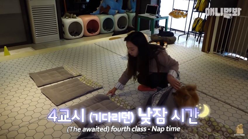 หลังจากเล่นมาเหนื่อยๆ ก็ถึงเวลาเติมพลังกันสักหน่อย โดยเหล่าผู้ปกครองน้องหมาก็จะเป็นฝ่ายเตรียมอาหารมาให้ครับ เพราะว่าน้องแต่ละตัวจะมีรสนิยมและประเภทร่างกายที่แตกต่างกันไป และก็เหมือนโรงเรียนอนุบาลทั่วไปเลย พอหลังจากที่กินอิ่มแล้วก็ได้เวลานอนอุ่นนั่นเอง ทางเจ้าหน้าที่โรงเรียนก็จะจัดแจงที่นอนให้เหล่านักเรียนประจำตำแหน่งของตัวเองครับ // ตอนอนุบาลเชื่อว่าหลายคนน่าจะชอบเวลานี้ที่สุดเลยใช่มั้ยครับ ฮ่าๆ