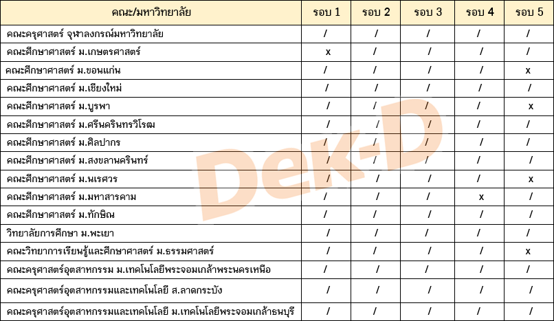 แต่ละมหาลัยเปิดรับในรอบไหนบ้าง