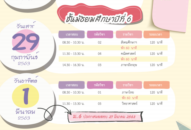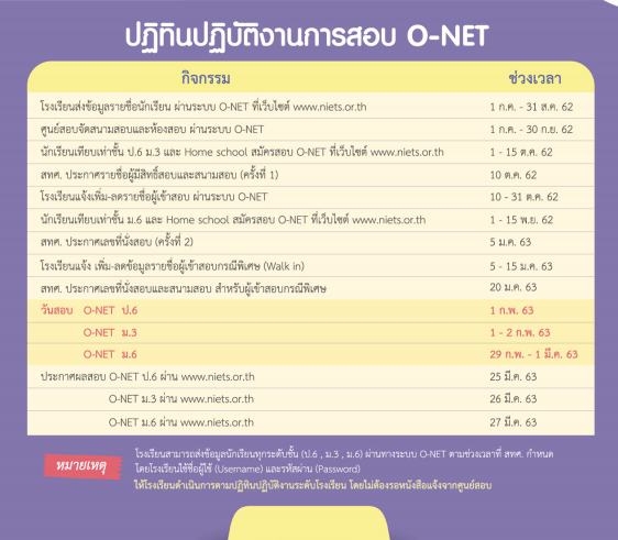 ***อย่าลืม!! กาปฏิทิน และเคลียร์คิว "วันสอบ" กันให้ดีดี ระวังอย่าให้ทับซ้อนกับกิจกรรมอื่นๆ นะคะ O-NET สอบได้แค่ครั้งเดียวเท่านั้น***