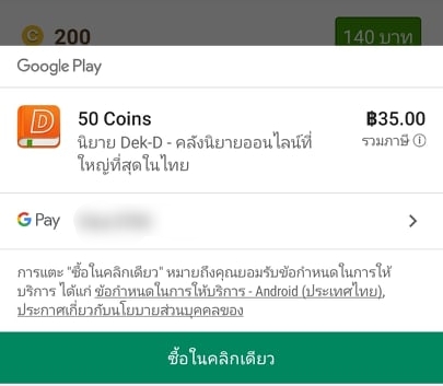 หากเราผูกบัญชีไว้กับGoogle Play อยู่แล้ว ระบบจะตัดผ่านมือถือตามตัวอย่างในภาพเลยค่ะ