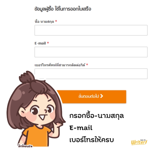 หลังจากเลือกจำนวน coin ที่ต้องการและยืนยันการสั่งซื้อเรียบร้อย ระบบก็จะนำจะทุกคนมาสู่หน้าออกใบเสร็จ น้องๆ จะต้องใส่ชื่อ-นามสกุล E-mail และเบอร์โทรให้ครบ เพื่อใช้เป็นหลักฐานการสั่งซื้อค่ะ