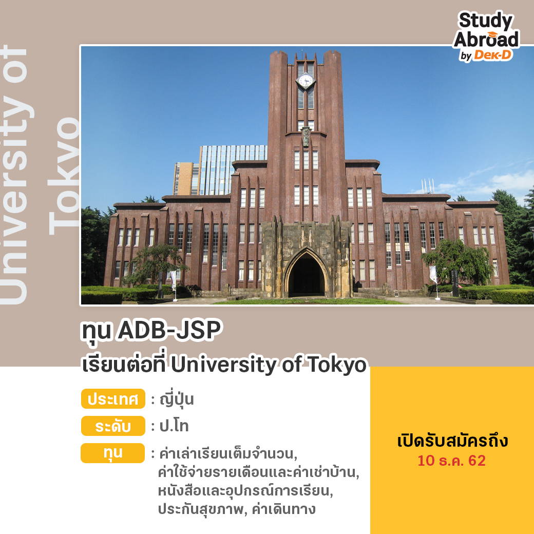 ทุน ADB-JSP เรียนต่อปริญญาโท ที่ University of Tokyo ประเทศญี่ปุ่น