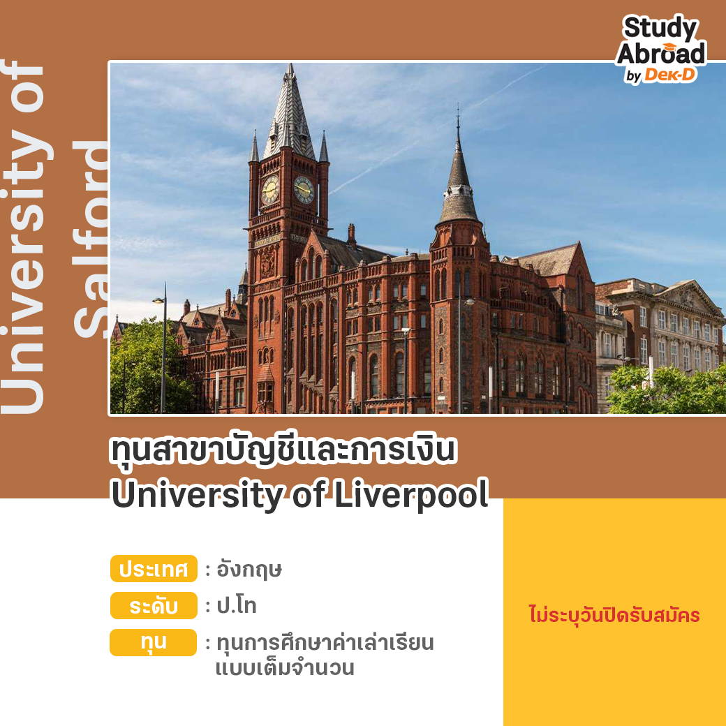 ทุน ป.โท เต็มจำนวน เรียนต่อสาขาบัญชีและการเงิน ณ University of Liverpool