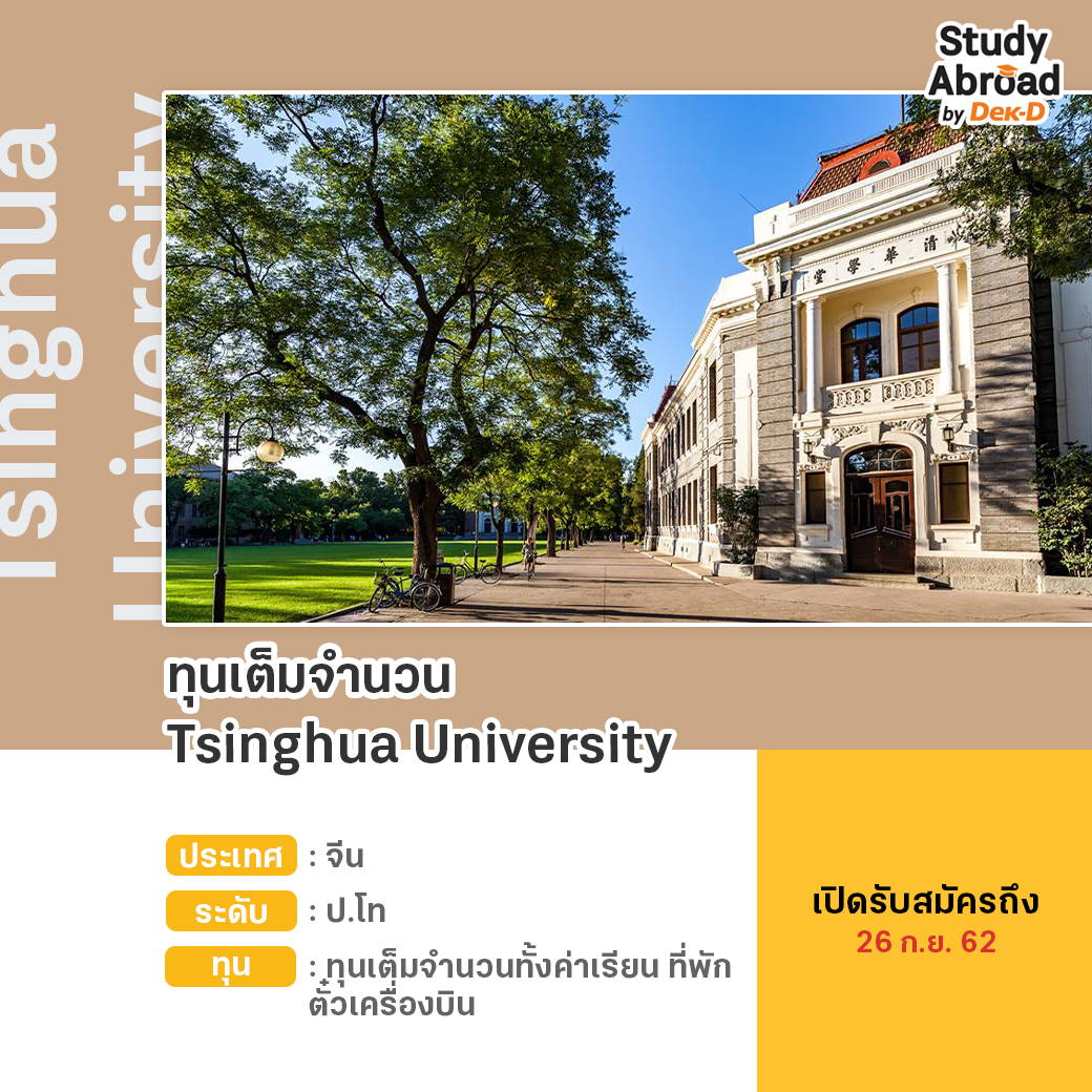 ทุนเต็มจำนวนเรียนต่อป.โท ที่ Tsinghua University ประเทศจีน