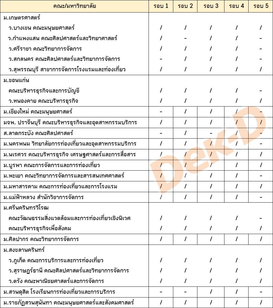 แนะนำให้ค้นหาจากระเบียบการด้วยคำว่า "การท่องเที่ยว" หรือ "การโรงแรม"