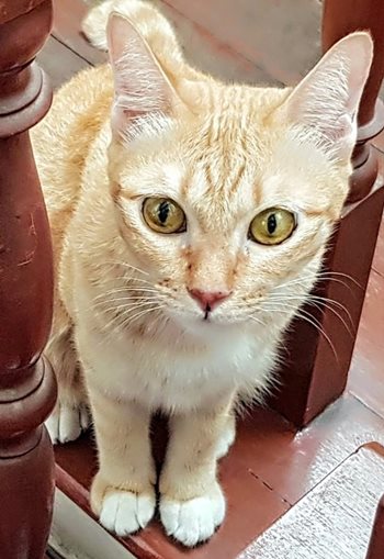 "แมวก็มีเหมือนกัน ชื่อ 'บาร์เบียร์' อายุ 5-6 ขวบ เก็บมาจากศาลพระภูมิแถวบ้าน เจอตอนเค้านั่งจุ๊กอยู่ตรงนั้น ตัวเล็กๆ เท่าฝ่ามือ อยู่ดีๆ จะชอบหายไปหรือหลงทาง เลยต้องให้อยู่ในกรงแล้วออกมาเป็นเวลา นิสัยก็จะเดายาก ถ้าอารมณ์ดีก็ร้องเพลง ถ้าอารมณ์ดีก็ไม่ยอมร้องเลย"