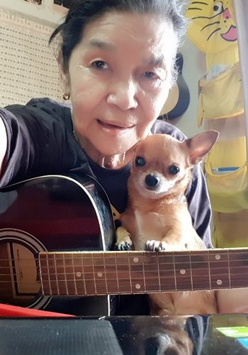 "แล้วลูกชายที่เป็นนักดนตรีอยู่แล้ว เขาก็ซื้อกีตาร์ให้เราตัวนึง และช่วยสอนทริคให้ ถ้าไม่เข้าใจอะไรก็ถามเขา เราเองพอมีพื้นฐานอยู่บ้างเพราะเคยเล่นตอนเด็ก แต่ไม่ได้จริงจัง ซึ่งการรู้แค่ 4 คอร์ดก็สามารถร้องเพลงได้เป็นพันๆ เลย"