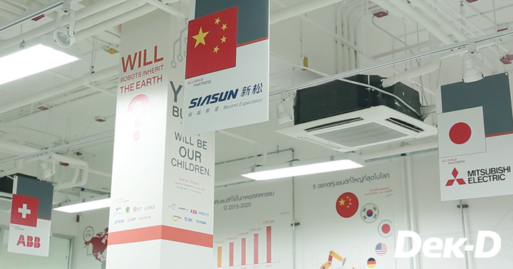 อย่างภายในแล็บหุ่นยนต์จะเห็นถึงความหลากหลายของบริษัทด้านหุ่นยนต์และระบบอัตโนมัติที่สนับสนุน ซึ่งห้องลักษณะนี้มีเยอะมาก โดยจากสถิติแต่ละปีเขาส่งนักศึกษาไปฝึกงานตามองค์กรต่างๆ ได้เยอะ และหลายองค์กรก็เลือกรับนักศึกษาที่นี่เข้าฝึกงานในทุกปี จะบอกว่าด้วยพาร์ทเนอร์เขาเยอะมาก นอกจากในประเทศก็มีส่งน้องๆ ไปฝึกงานต่างประเทศด้วยนะครับ เช่น ประเทศญี่ปุ่น บางคนฝึกแล้วได้งานทำที่นั่นเลย แบบนี้นักศึกษาเลยได้ประโยชน์ไปเต็มๆ