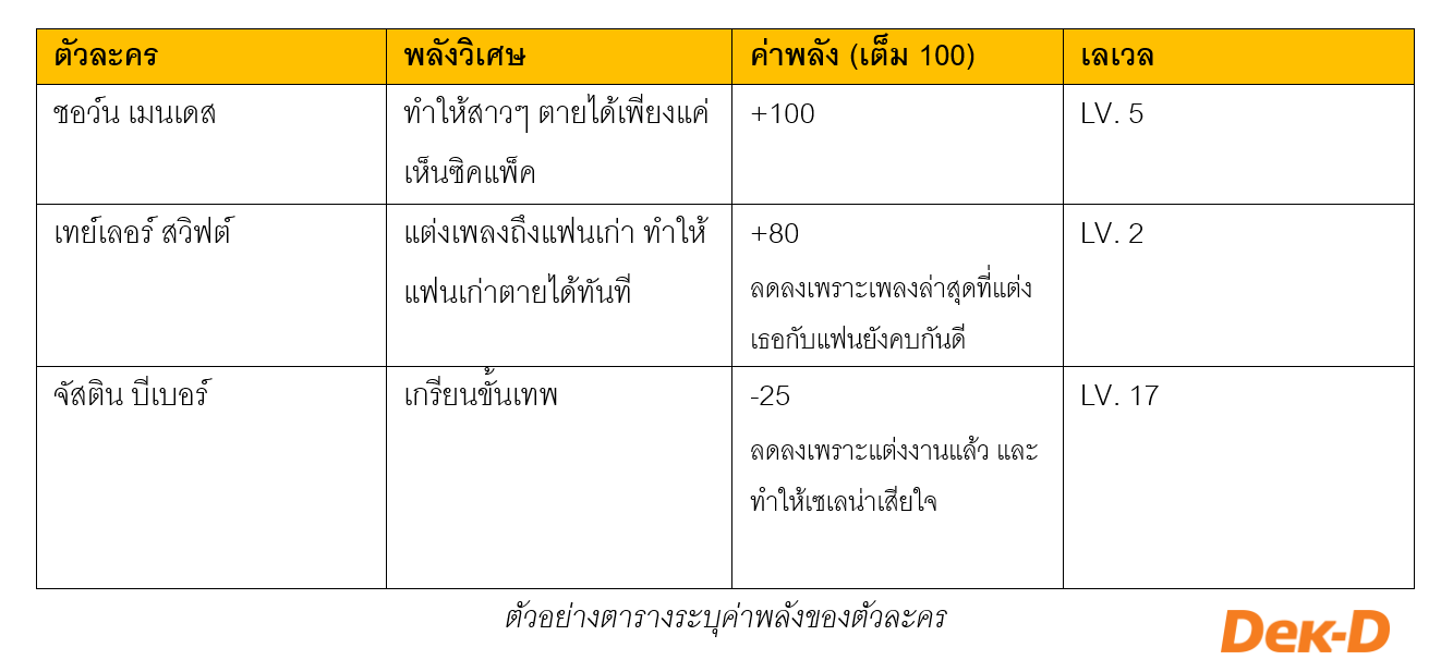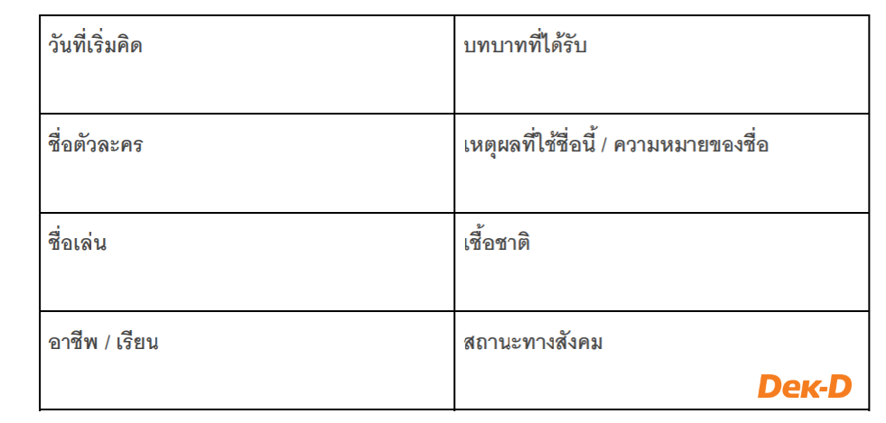 01 ใช้ตารางสร้างตัวละครให้สมจริง