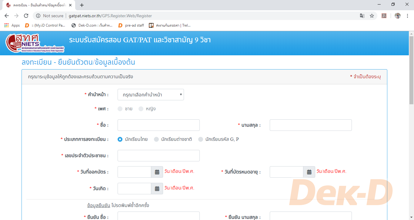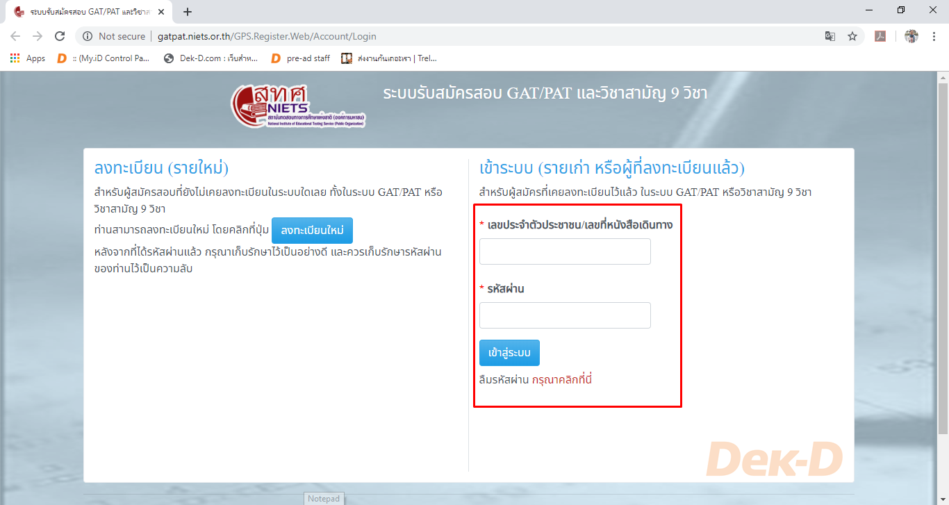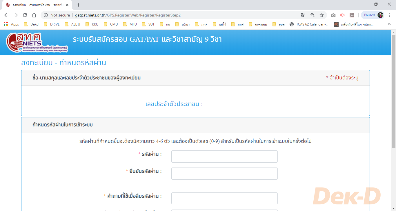 สำหรับน้องๆ #dek63 ที่จะสมัครสอบวิชาต่างๆ ของสทศ. จะต้องทำการลงทะเบียน เพื่อตั้งรหัสผ่านในการเข้าระบบก่อน จึงจะสามารถทำการสมัครสอบ GAT-PAT ได้ โดยรหัสผ่านนี้น้องๆ จะต้องเก็บให้ดี เพราะสามารถใช้สมัครได้ทั้ง GAT-PAT และ 9 วิชาสามัญ