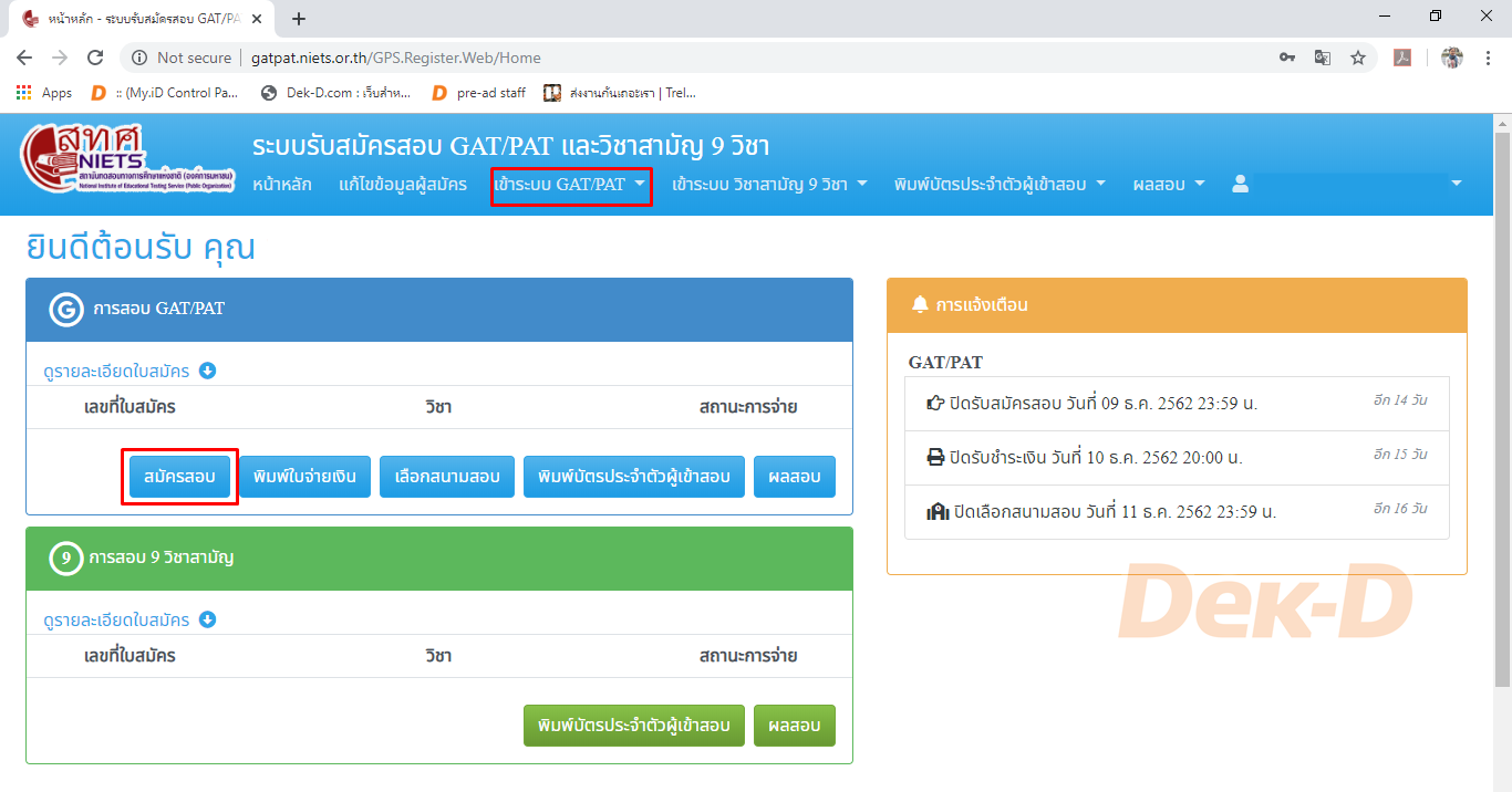 1) เข้าไปที่เว็บไซต์ www.niets.or.th แล้วถ้าเจอกับหน้าต่างแบบนี้ ก็คลิก “สมัครสอบ” ได้เลย หรือคลิกที่นี่ *ถ้าใครสมัครผ่านโทรศัพท์มือถือ แนะนำให้สมัครผ่าน App เด็กดี TCAS