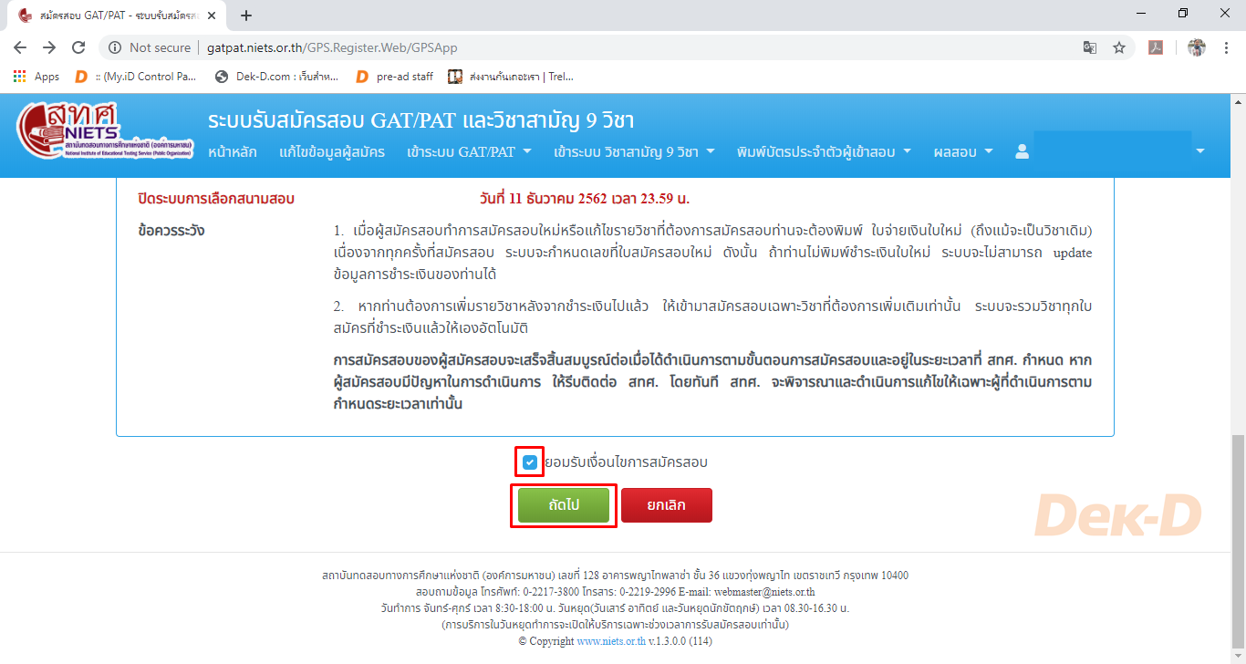 สทศ. จะเปิดรับสมัคร GAT - PAT ตั้งแต่วันนี้ - 9 ธันวาคม 2562 นี้ โดยจะปิดรับสมัคร วันที่ 9 ธันวาคม 2562 เวลา 23.59 น. และ ปิดระบบชำระเงินในวันสุดท้ายของการรับสมัคร วันที่ 10 ธันวาคม 2562 เวลา 20.00 น.