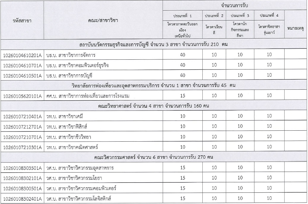 มี GPAX ไม่น้อยกว่า 2.75 (ยกเว้นคณะครุศาสตร์)โควตานักกิจกรรมและกีฬา