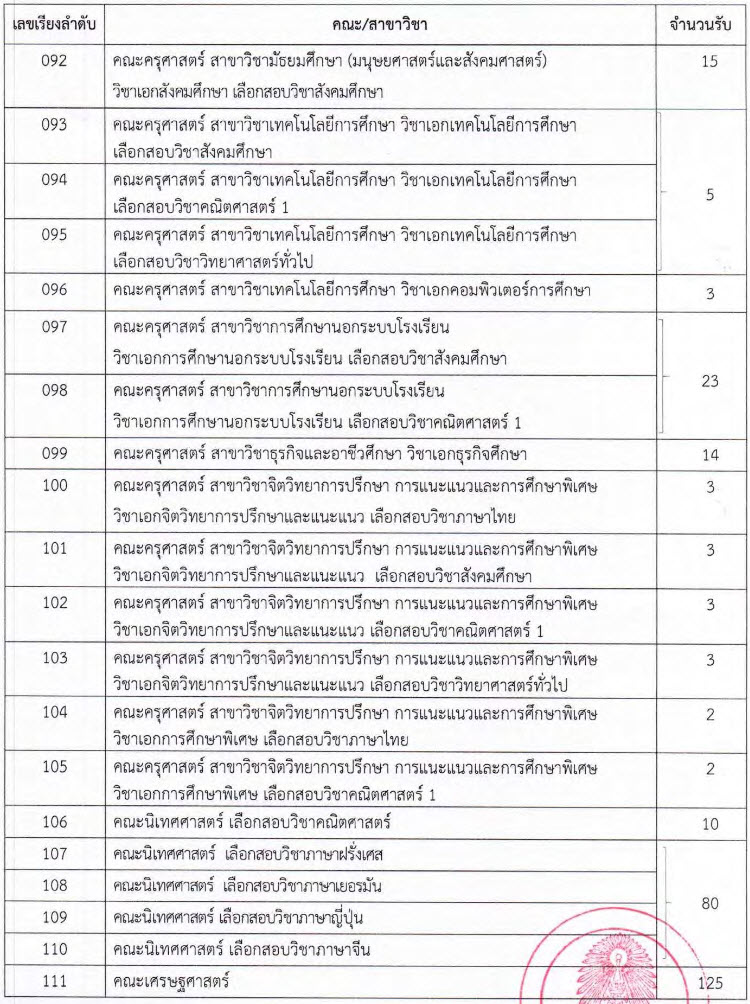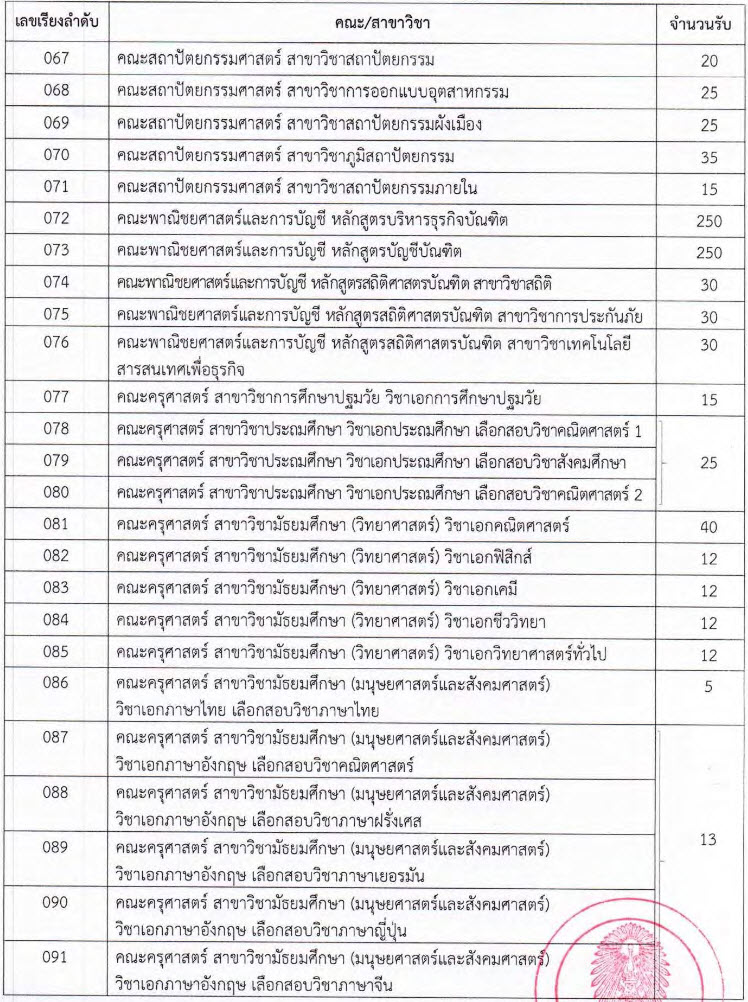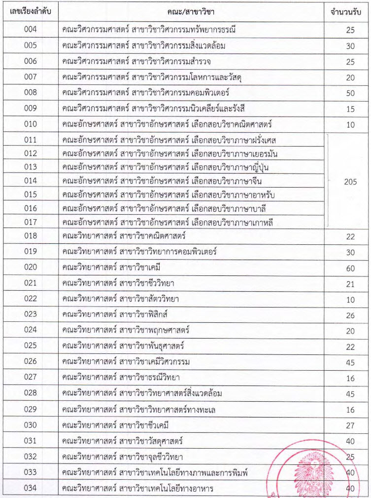 คณะ/สาขาที่เปิดรับ และจำนวนรับ
