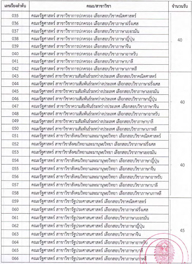 มี GPA กลุ่มวิชาวิทยาศาสตร์ และคณิตศาสตร์ รวมกันไม่น้อยกว่า 3.00คณะรัฐศาสตร์