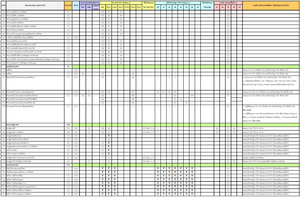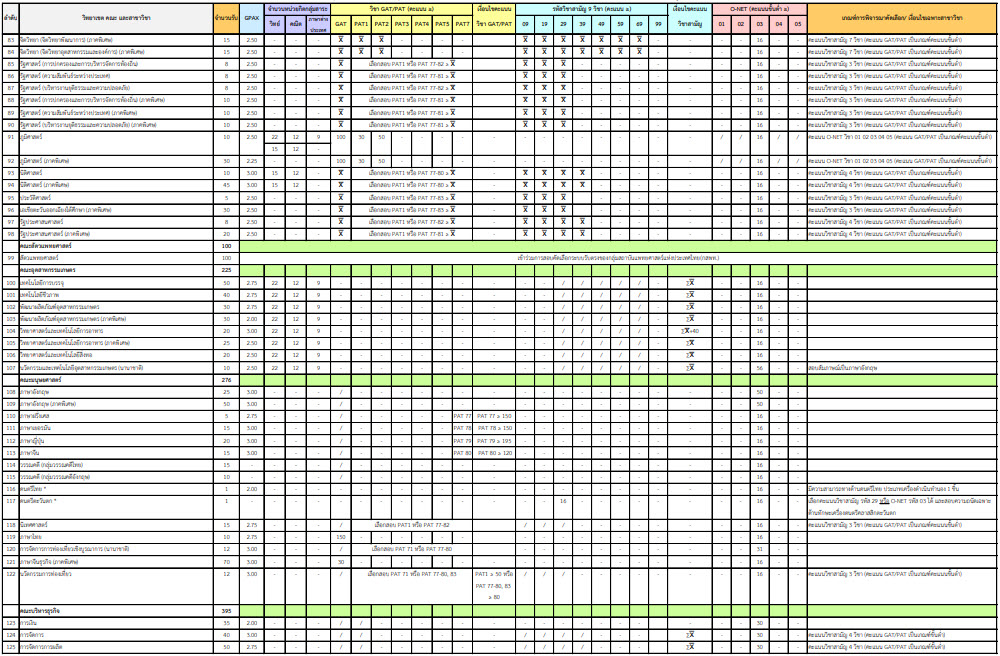 คณะที่เปิดรับ