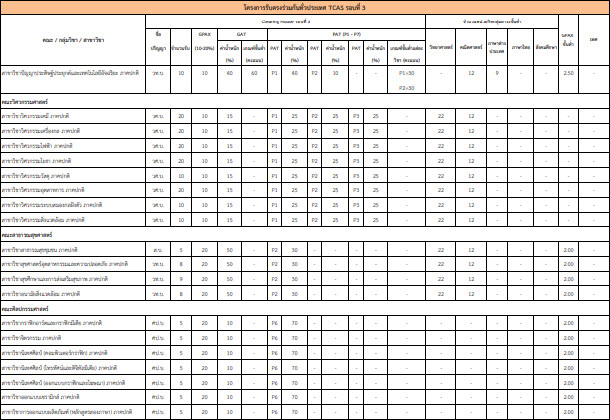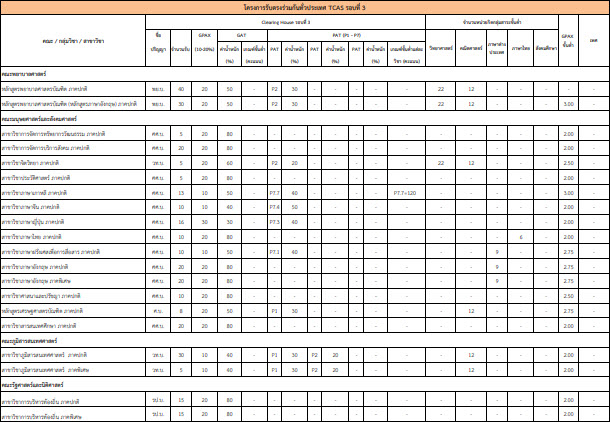 ทุกสาขาวิชา ใช้ GPAX ในการคำนวณคะแนน