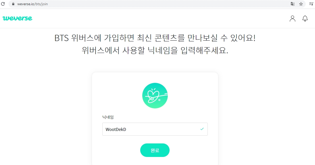 หลังจากสมัครสมาชิกแล้ว ก็เตรียมเข้าสู่บทเรียนกันได้เลย โดยน้องๆ จะต้องกรอกชื่อเล่นของเราลงไปก่อนเข้าระบบนะครับ ที่ลิงก์ https://www.weverse.io/bts/join