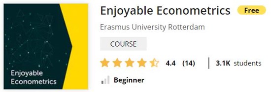 คอร์สว่าด้วย “เศรษฐมิติ” (Econometrics) หนึ่งในสาขาของเศรษฐศาสตร์ที่ศึกษาความสัมพันธ์ของตัวแปรทางเศรษฐกิจด้วยเครื่องมือและทฤษฎีการวิเคราะห์ต่างๆ โดยในคอร์สจะช่วยปูพื้นฐาน ตามด้วยหัวข้อที่น่าสนใจ เช่น การถดถอยอย่างง่าย (Simple Regression), การถดถอยแบบพหุคุณ (Multiple Regression), ตัวเลือกไบนารี (Binary Choice), อนุกรมเวลา (Time Series) ฯลฯ เพื่อให้เราแปลข้อมูลเป็นแบบจำลองทางเศรษฐศาสตร์ สำหรับนำไปใช้ทำนายและสนับสนุนการตัดสินใจต่างๆ ได้