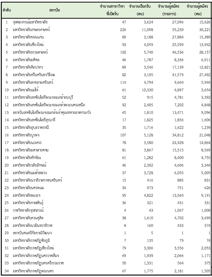 ส่วนมหาวิทยาลัยอื่นๆ มียอดเท่าไหร่ไปดูกันเลย ปล.ยอด กสพท จะอยู่ลำดับที่ 66 ครับ