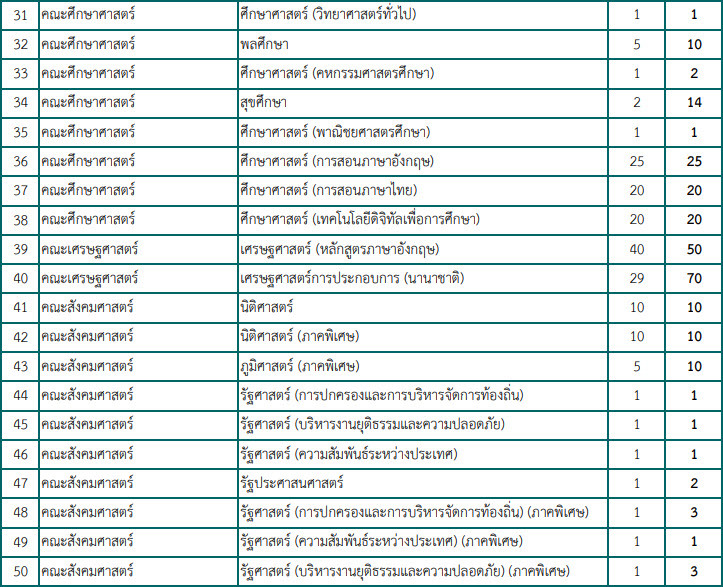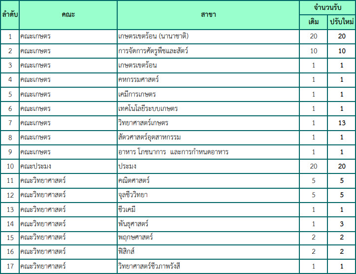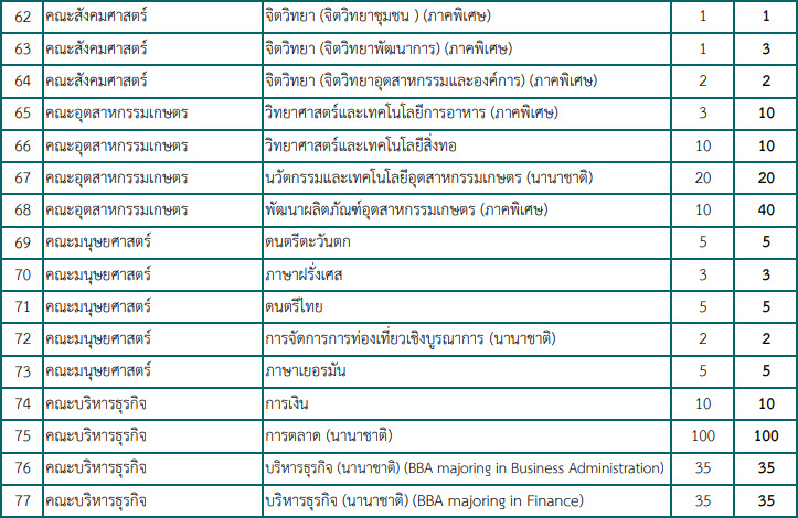 หมายเหตุ: มีบางสาขาวิชาปรับจำนวนรับ วันที่ 11 มิ.ย. 63