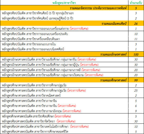 สวัสดีค่ะน้องๆ หลังจากที่เรารอระเบียบการ TCAS รอบ 5 หรือรับตรงอิสระกันมา วันนี้พี่แนนนี่มีระเบียบการของมหาวิทยาลัยศิลปากร ซึ่งจะเปิดรับสมัครทั้งหมด 76 สาขาวิชา 1,517 ที่นั่ง ซึ่งน้องๆ จะสามารถเลือกสมัครได้แค่ 1 สาขาวิชา หรือ 1 โครงการ เท่านั้น