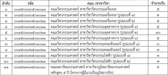 ประกาศผลผู้มีสิทธิ์เข้าศึกษา : 14 มิถุนายน 2563