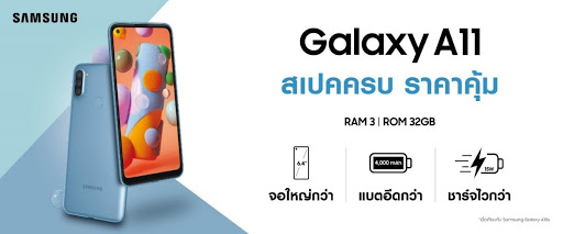 นอกจากนี้ ซัมซุงยังเปิดตัว กาแลคซี่ A11 สมาร์ทโฟน เอ ซีรีส์ น้องเล็กสเปคครบ ราคาคุ้มเพียง 5,199 บาท ที่มาพร้อมกับแรม 3 กิกะไบต์ และหน่วยความจำภาพใน 32 กิกะไบต์ หน้าจอใหญ่สะใจขนาด 6.4 นิ้ว แบตเตอรี่ขนาด 4,000 มิลลิแอมป์ ใช้งานได้ยาวนานตลอดทั้งวัน พร้อมรองรับการชาร์จเร็ว 15 วัตต์ จะกิจกรรมหนักแค่ไหนก็เอาอยู่ โดยมีให้เลือก 2 สี ได้แก่ Black และ Blue